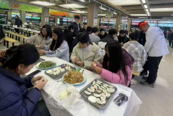 2025级应用统计一班的同学们在班主任魏安康的组织下,将学校食堂变成了冬至活动的温馨场所。同学们分工协作,有的负责准备馅料,有的负责包制,有的负责下锅煮制。食堂里香气四溢,热闹非凡。魏安康表示:“集体包饺子不仅能锻炼同学们的动手能力和协作精神,更能增强班级凝聚力。看到大家脸上的笑容,我觉得这次活动特别成功!” 。
