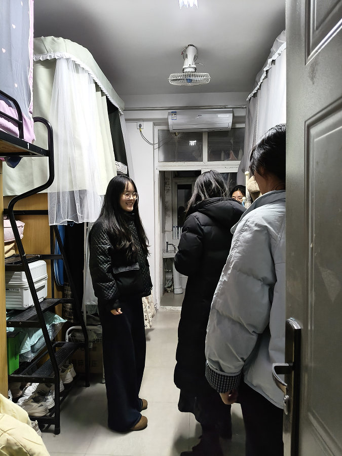 走访过程中,领导老师们逐间走进学生宿舍,与同学们面对面亲切交谈。详细询问大家的日常起居、学业进展、人际关系及思想动态,耐心倾听同学们在生活、学习中遇到的困难与诉求,对同学们提出的问题逐一回应解答。同时,老师们结合近期校园工作重点,提醒同学提高防诈骗能力、职业规划能力等,鼓励同学们树立积极向上的学习态度,抵制考试作弊现象,展现数统学子的责任与风采。针对毕业班学生,老师们耐心了解大家的论文选题、就业意向和求职进度,并针对同学们在毕业季可能面临的压力与困惑,提供了实用的建议,鼓励大家勇敢探索、合理布局,积极利用学校提供的平台,拓宽就业视野。