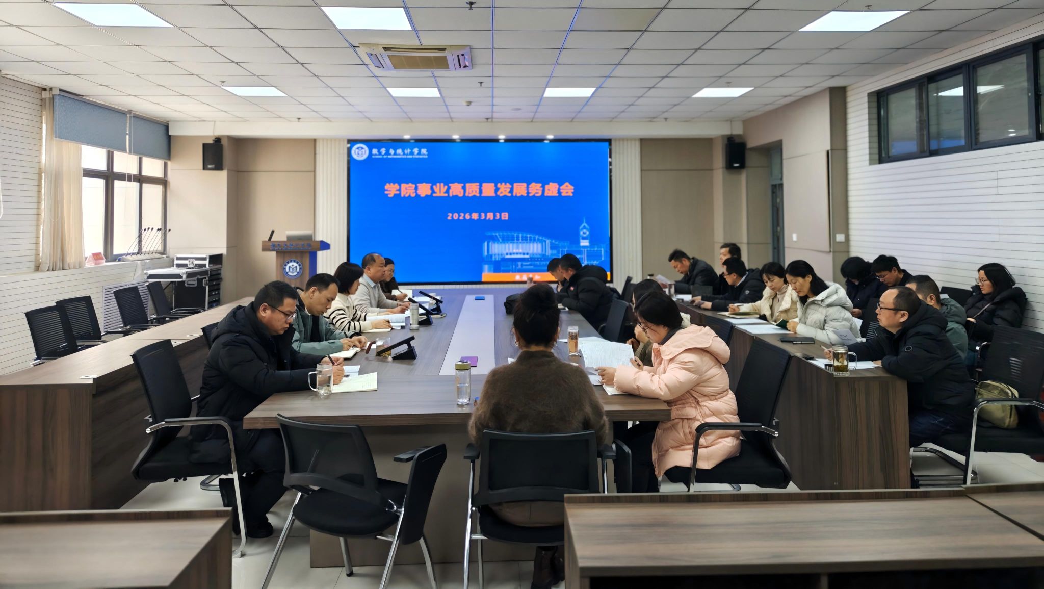于3月3日下午在惟德楼315会议室召开事业高质量发展务虚会。学院班子全体成员、科室负责人、教研室主任及副主任参加会议。会议由院长谷存昌主持。