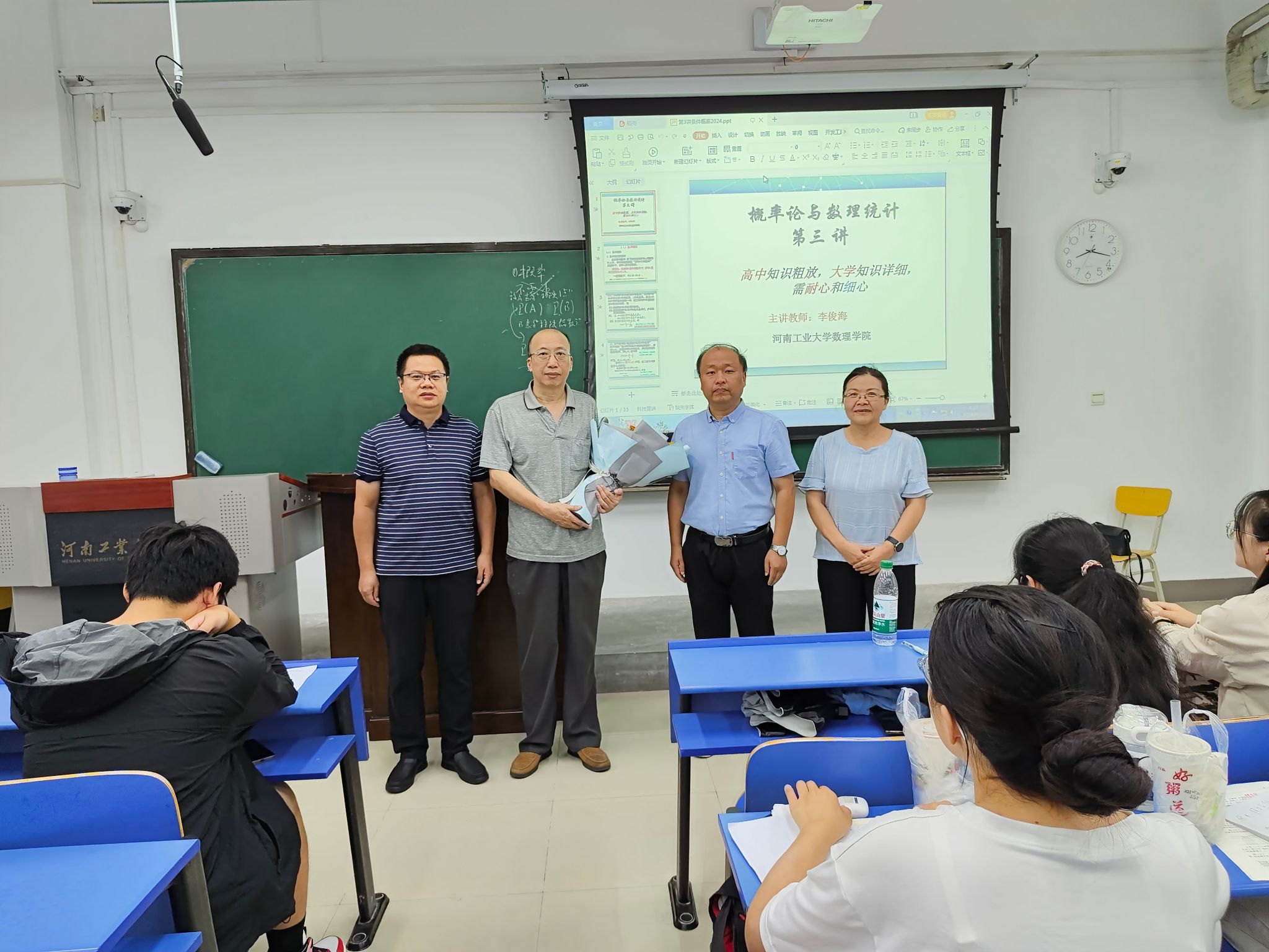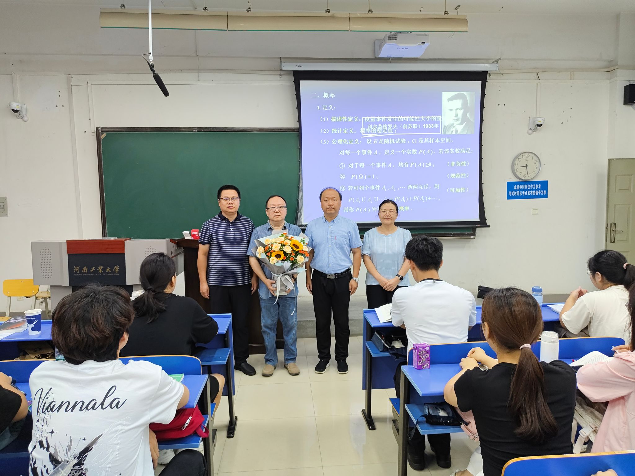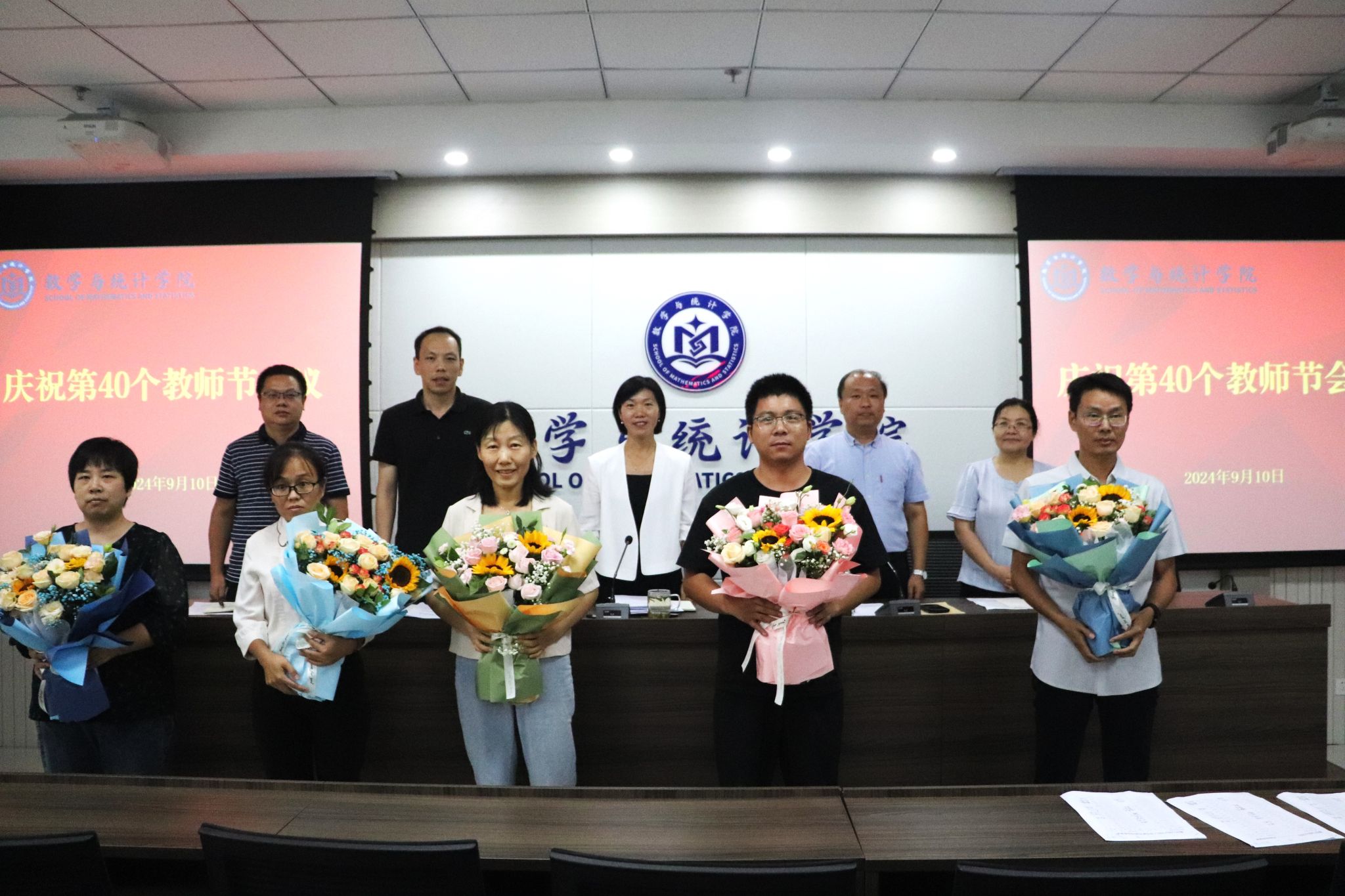 9月10日上午,院长谷存昌和副院长曹建莉、肖留超带领学院党政办、教学办负责人,走进教室课堂,看望慰问了学院一线任课教师。上课前,学院领导为李俊海、林浩两位老师送上鲜花,代表学院向两位老师致以诚挚的问候和节日的祝福。