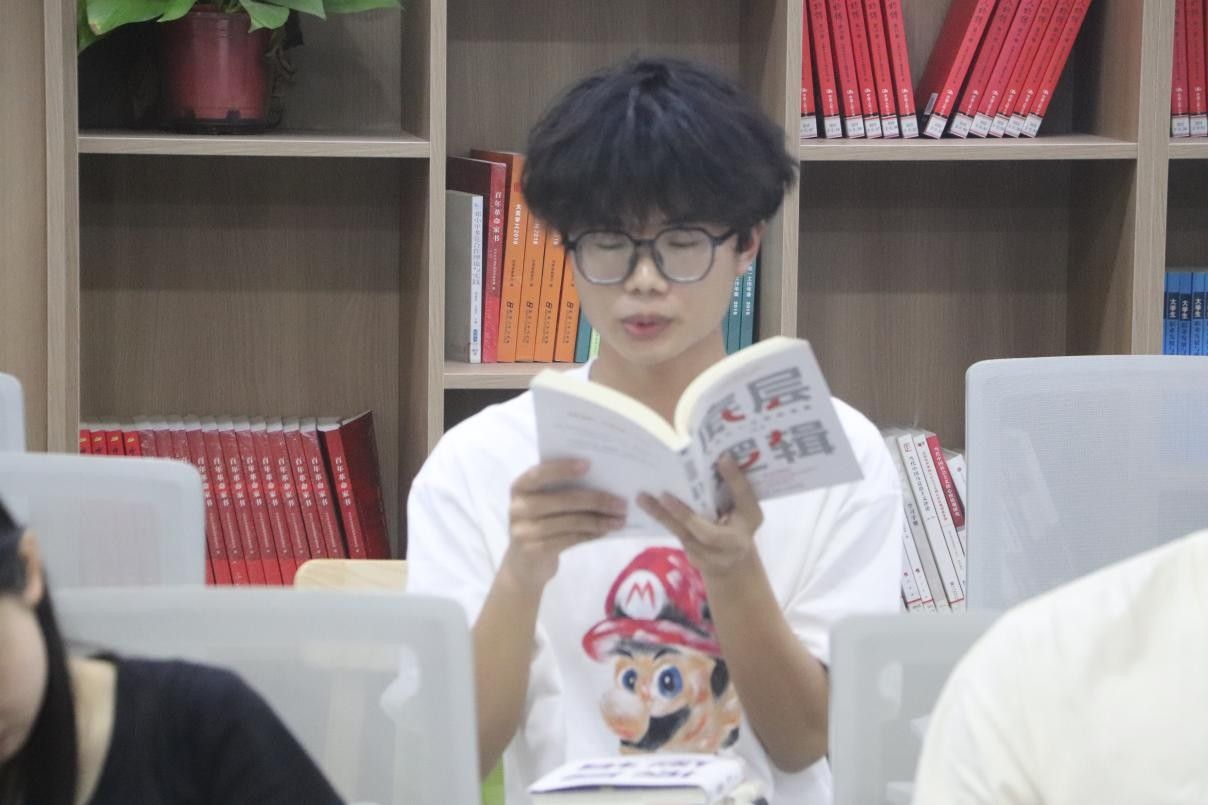 分享环节,共有20名学生积极分享了自己喜欢的名篇佳作,讨论的书目贯穿古今中外,涉及到的体裁包括小说、散文、传记、诗歌等。应统2401班汤立超介绍了霍达的《穆斯林的葬礼》,就宏大背景下人物命运的变迁阐述了自己对于长篇小说的阅读感悟;数学2401班庞家良分享了舒婷的清新散文集带给大家心灵的宁静;应统2302班唐洁对张爱玲的分析,让大家看到了是时代局限下这一人物内心世界。