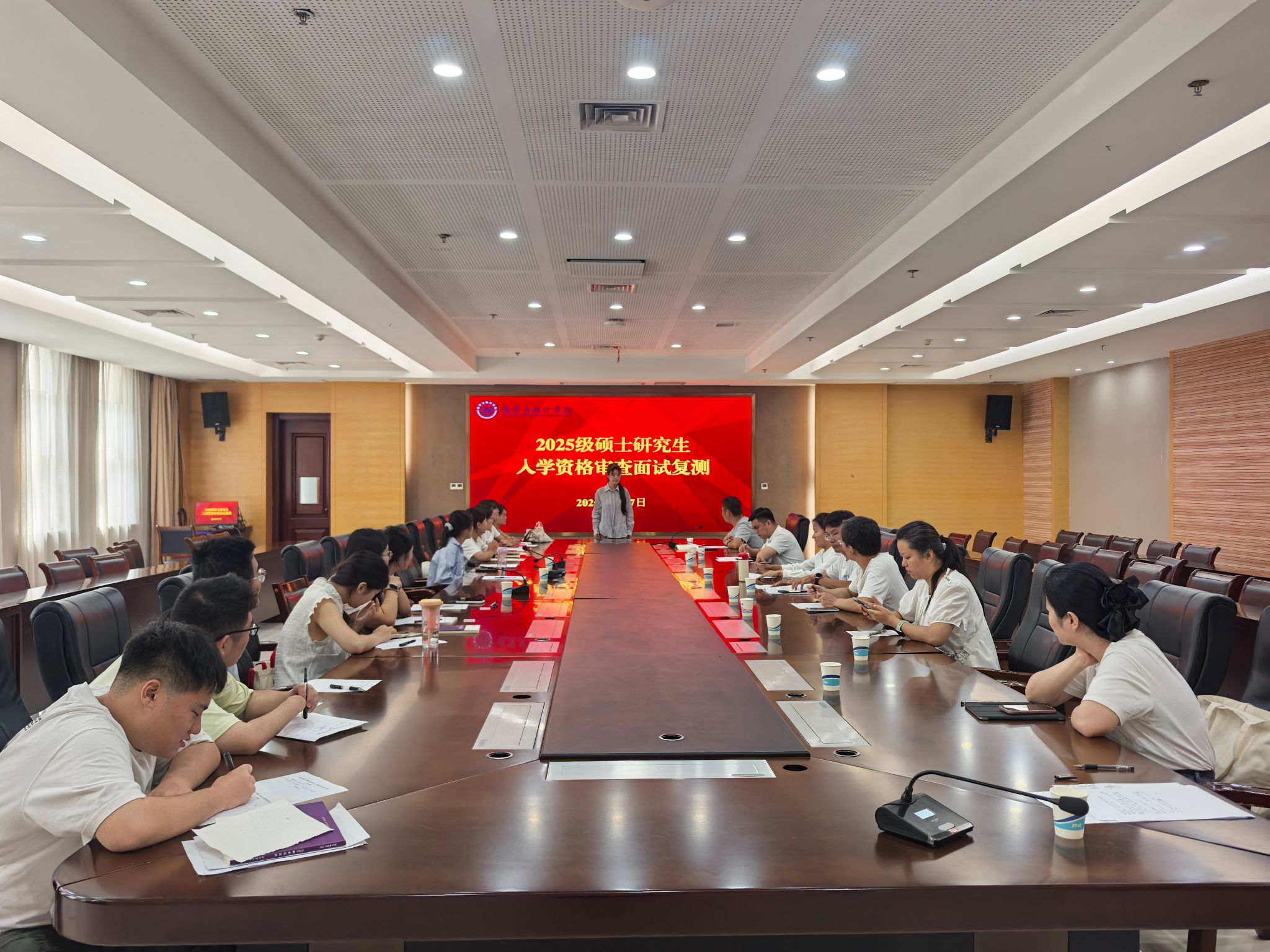 会议第二阶段为硕士研究生入学资格审查面试复测。全体新生分为数学与应用统计两个小组,分别在行政楼D203和D204会议室同时进行。各研究生导师组成的专家组对新生的专业基础、综合素质等方面进行了全面、细致的考核。整个复测过程严谨有序,公平公正,顺利完成了对全部新生的资格审查。
