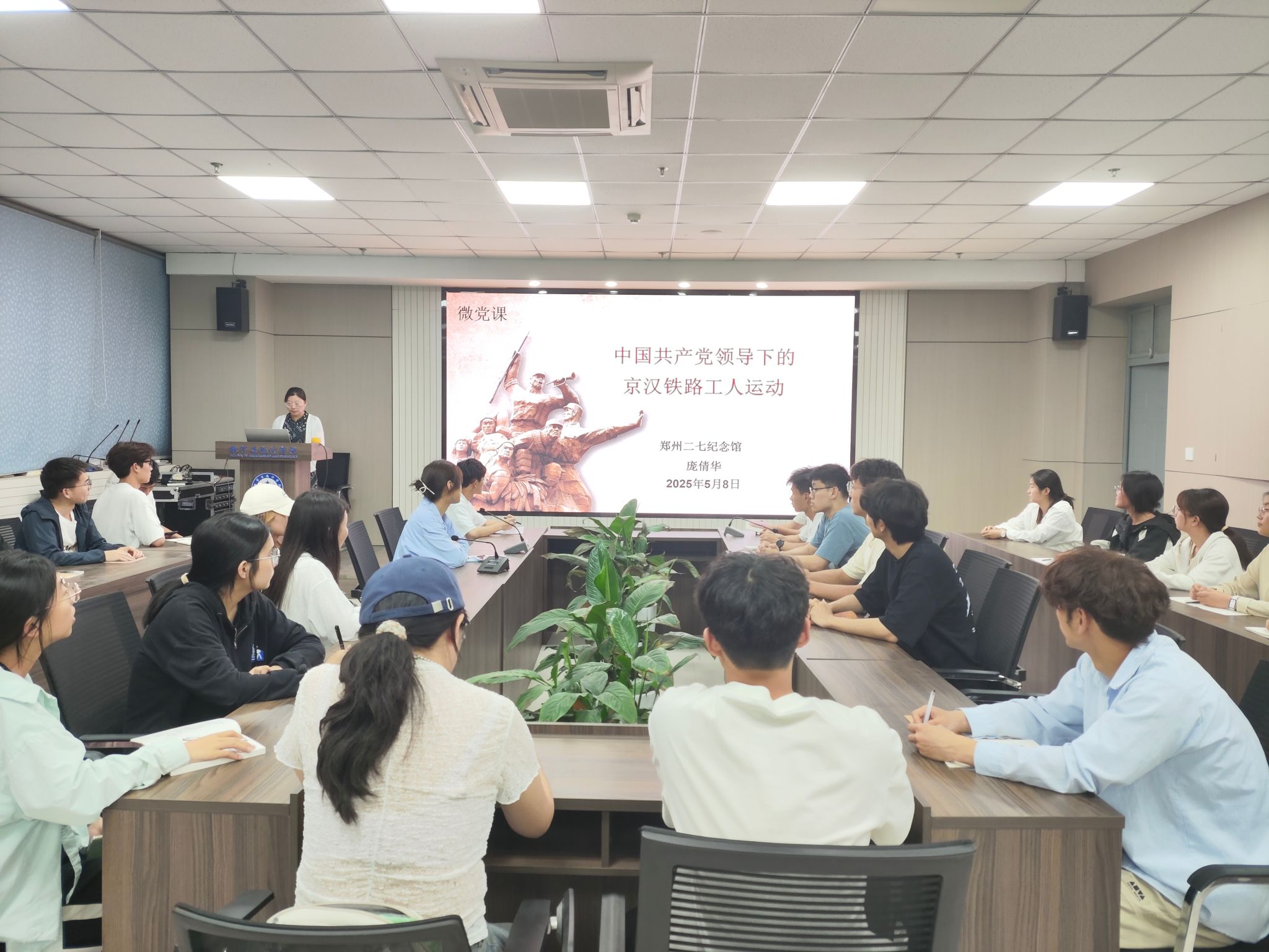 庞倩华主任以“中国共产党领导下的京汉铁路工人运动”为题,用丰富生动的历史事件和历史图片,详细介绍了京汉铁路总工会成立背景、二七事件过程、二七大罢工的结果和原因分析、党领导工人运动的经验教训,为入党积极分子上了一堂生动的党性教育课。她指出,“二七精神”的核心思想是“听党话,跟党走”,在中国共产党的领导下,京汉铁路的工人阶级在那场“为了争人权争自由”的革命斗争中,充分表现出了“革命自觉、团结奋斗、纪律严明、勇于奉献”的精神。她希望同学们能够把二七精神更好地落实在日常行动中,做二七精神的传承人。