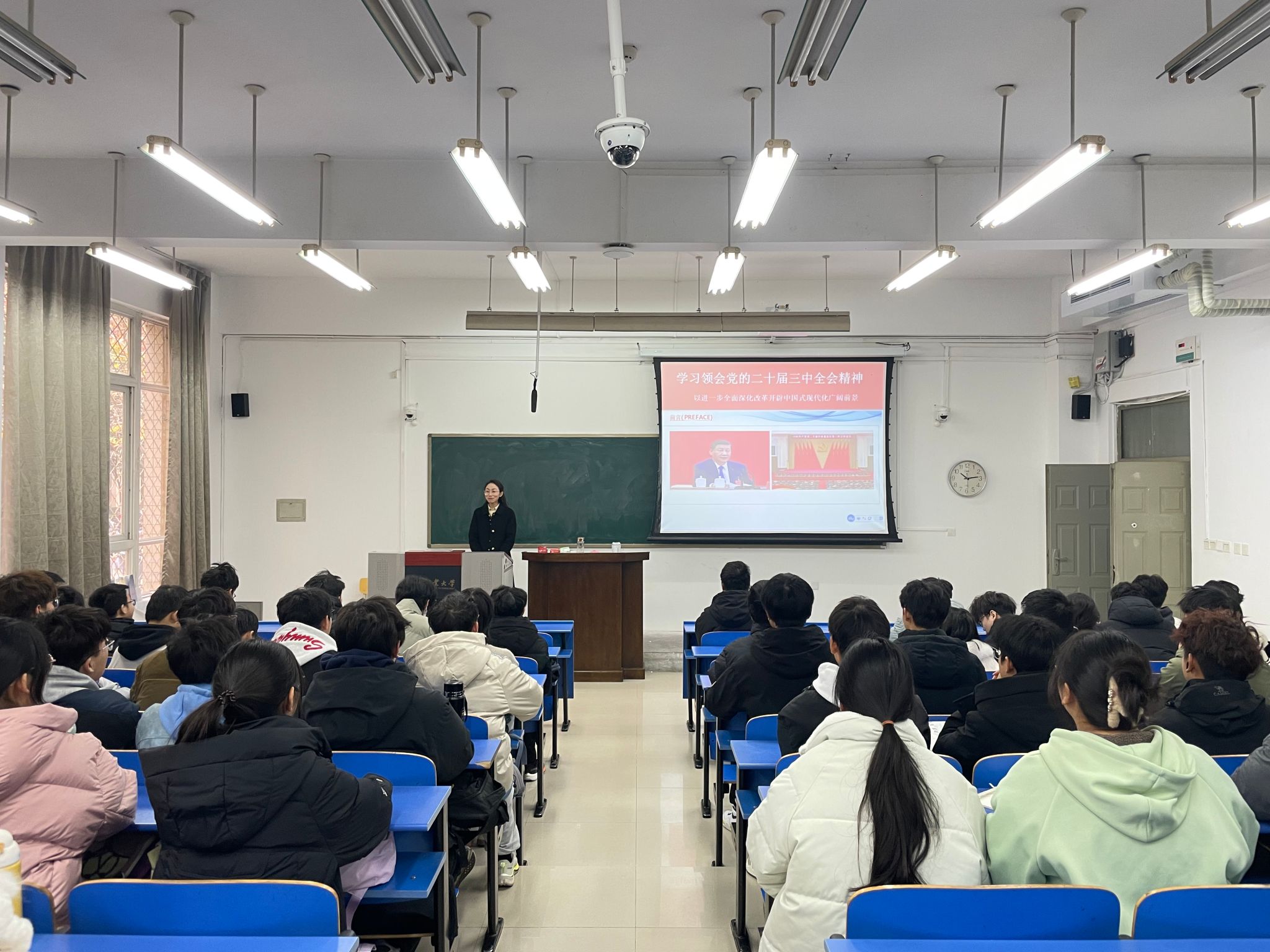 讲座上,张瑞玲从党的二十届三中全会召开的时代背景和重要意义、习近平总书记在全会上的重要讲话精神、《决定》提出的进一步全面深化改革重大措施、全力以赴抓好全会精神贯彻落实四个方面详细解读了党的二十届三中全会精神,主题鲜明、深入浅出,帮助青年学生进一步领悟了党的二十届三中全会精神,引导青年牢记嘱托、坚定信念、凝心聚力,汇聚奋进新征程中强大的青春力量。