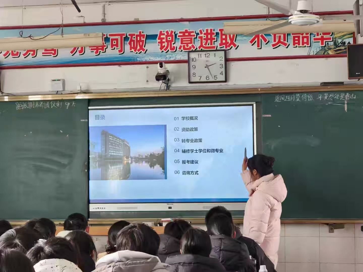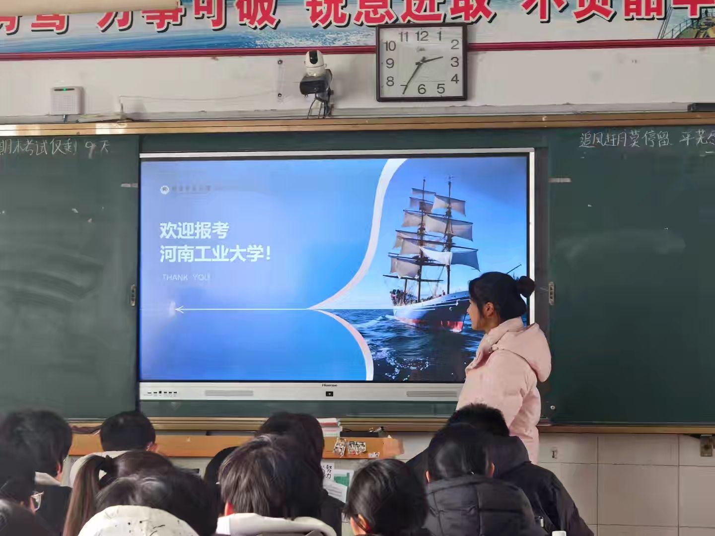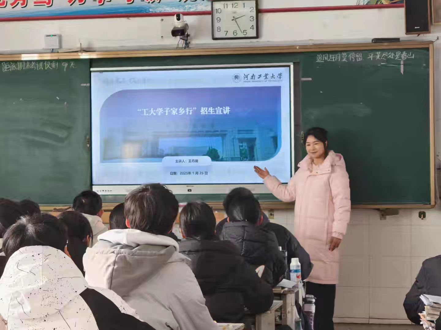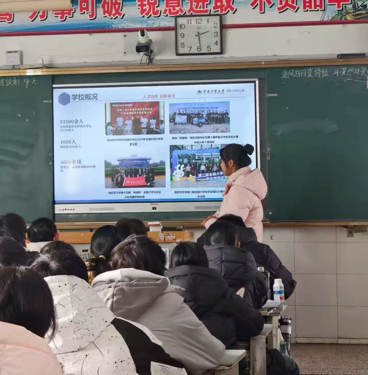 随后,她系统介绍了学校的历史沿革、办学定位与学科优势,重点突出了24个国家级一流专业、18个工程教育认证专业的硬核实力,以及“大国粮仓”特色学科的行业影响力,让同学们对工大的学术底蕴有了深刻认知。此外,她还分享了学校的社团文化、科创竞赛、志愿服务等多元化成长平台,展现了工大“立德树人、全面发展”的育人理念,让同学们对大学生活充满了无限憧憬。