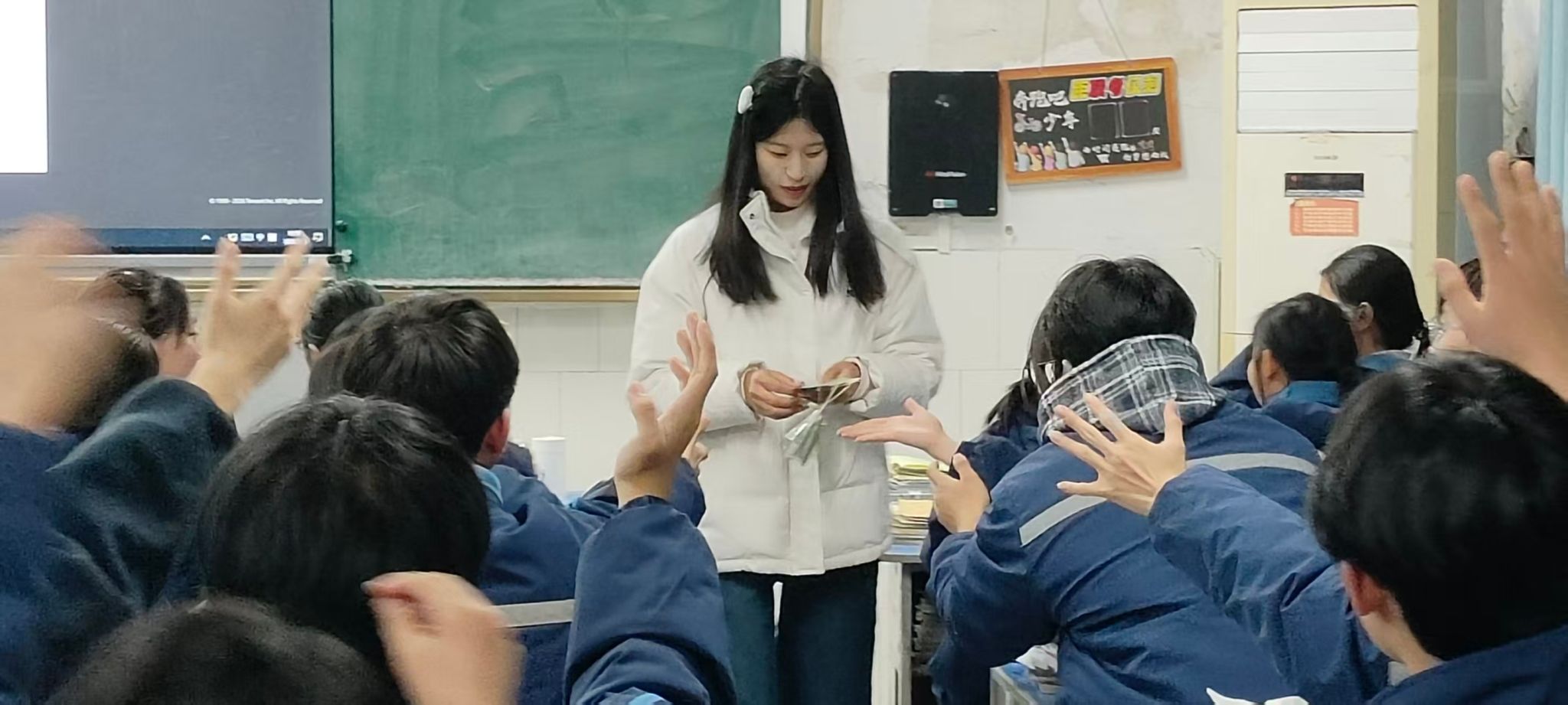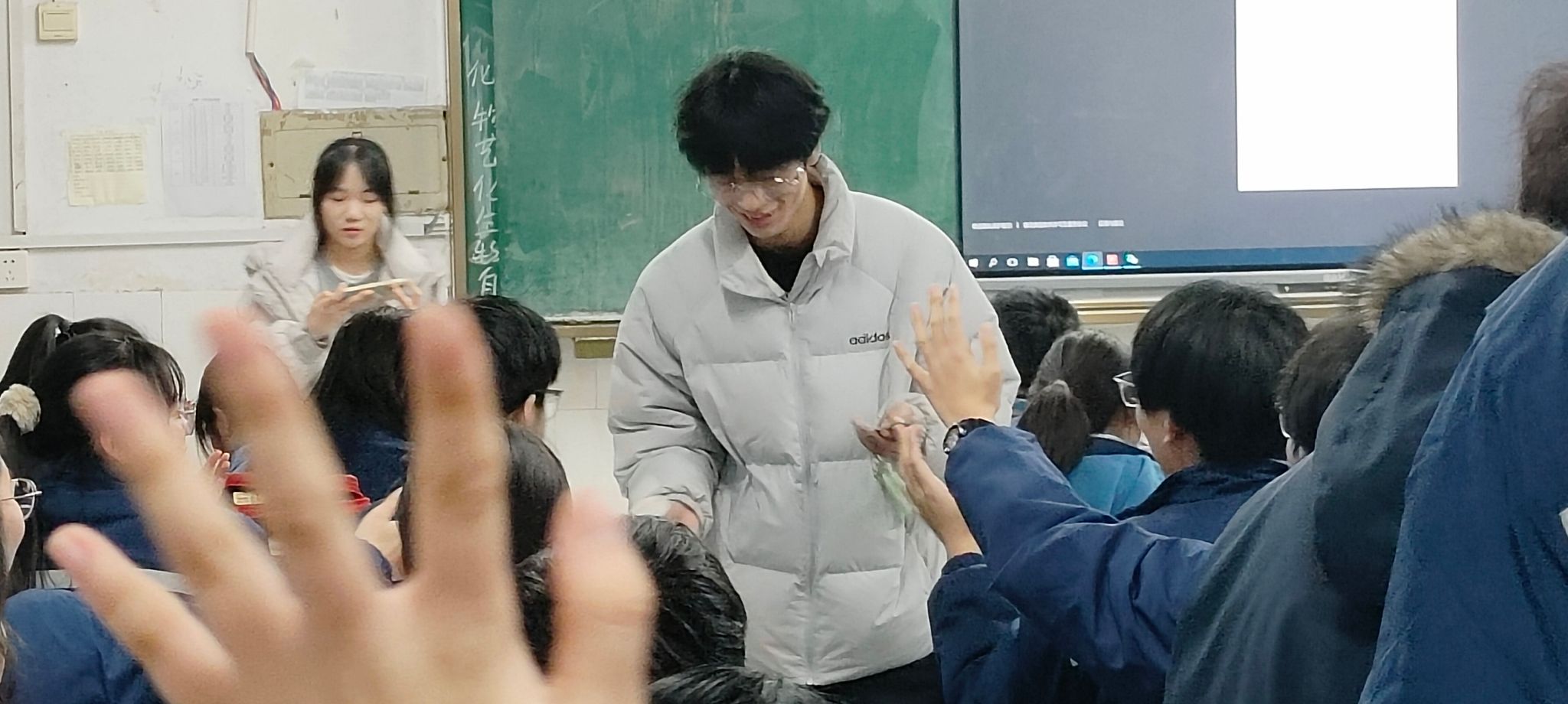活动渐进尾声,到了最为激动的互动环节,学弟学妹们积极提问学习方法与目标推荐,两位学子针对不同的学科耐心解答不同的学习方法,分享调节压力的技巧。教室里充斥着好奇与憧憬的氛围。同时,裴晨阳和千佳萌同学将文创小礼品奖励给9班10班的学子们,让学子们感受到工大的魅力,激励他们保持热爱,脚踏实地为梦想前行。