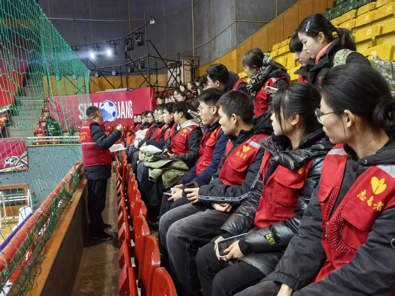 2025级学生乔浩琪积极响应国家 “返家乡” 社会实践号召,于石家庄市中山体育馆参与 2025 年河北省五人制足球超级联赛石家庄赛区志愿服务,担任赛事引导员,以青春之力为家乡体育赛事保驾护航。