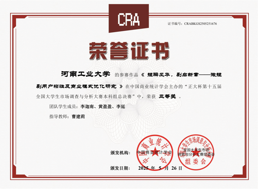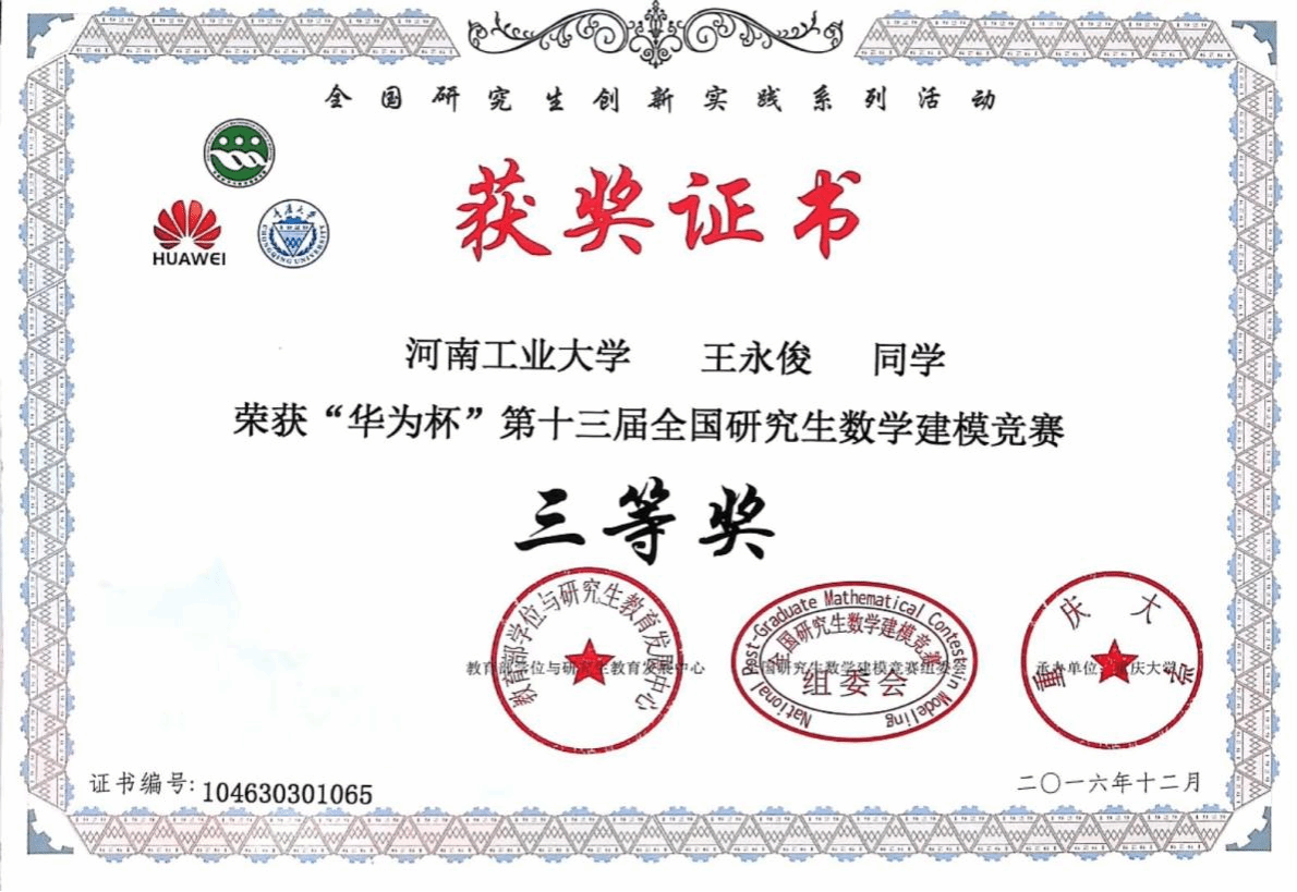 同时,河南省第十四届“挑战杯”课外科技作品竞赛省级一等奖1项;学院创客空间共孵化学生创业项目7个,获“创青春”河南省大学生课外科技学术作品竞赛省级一等奖1项、第三届“互联网+”全国大学生创新创业大赛获省级二等奖1项、“创青春”河南省大学生创业大赛获省级三等奖1项。研究生共发表论文50余篇。学院积极开展学术交流活动,邀请国内多名数学、应用统计学方面的专家教授为学生讲学,营造了浓厚的学习氛围。