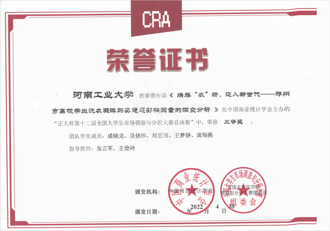 院注重学生素质能力培养,积极组织学生参加各类竞赛和各类社会实践活动,取得了优异成绩。近五年,在“挑战杯”课外科技作品竞赛、“互联网+”全国大学生创新创业大赛、全国大学生数学建模竞赛、全国大学生市场调查与分析大赛等赛事中获得国家级奖20余项,获得省级奖项200余项,国际奖40余项。其中,第十八届“挑战杯”全国大学生课外学术作品竞赛获得“揭榜挂帅”专项赛特等奖,实现学校学生工作的重大突破。