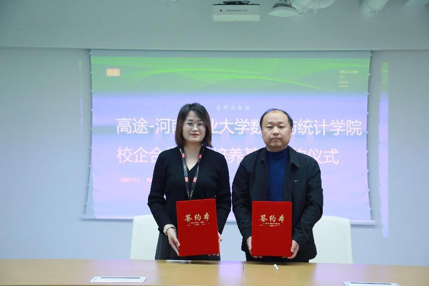 院长谷存昌、高途郑州中原总部人力资源经理李惠君分别代表双方签订了校企合作协议。
