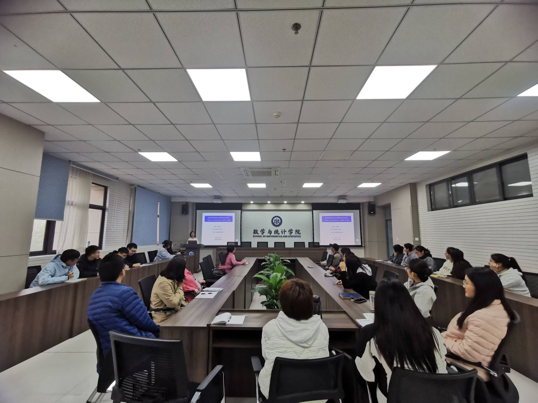 “随机分析与数据分析”团队负责人凃淑恒博士在惟德楼315会议室作了题为“延迟倒向随机微分方程解的适定性”的学术报告。学院副院长曹建莉、科研创新培育团队负责人、骨干教师、全体研究生和创新实验班本科生参加了会议。报告会由曹建莉主持。